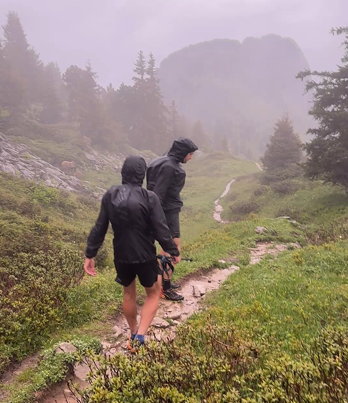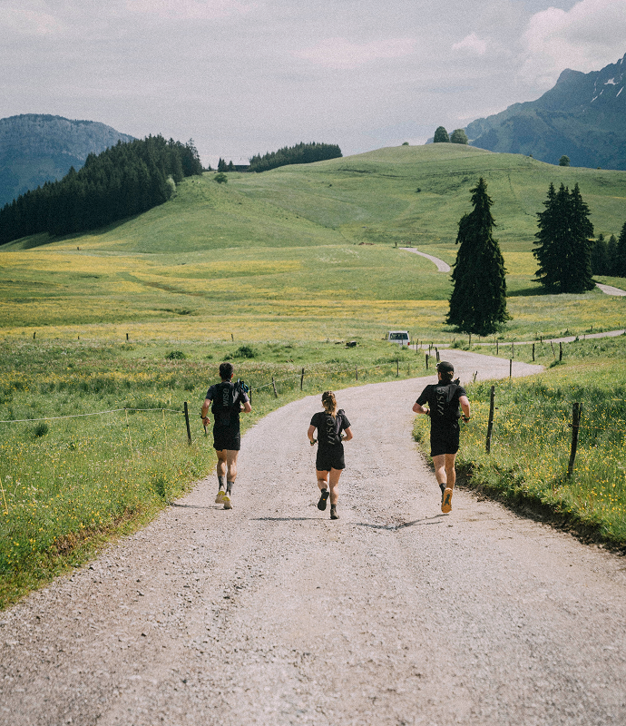 Entre deux respirations, sur des chemins escarpés où chaque foulée demande précision et engagement, une vision commune émerge. L‘ultra-running comme vecteur de progression. D’intenses échanges révèlent une frustration partagée face aux limites des équipements existants. Les textiles qui s'alourdissent sous l'effet de l’effort lors des longues ascensions. Les systèmes de portage qui contraignent plus qu'ils ne libèrent le mouvement dans les passages techniques. Les configurations inadaptées aux variations extrêmes de température entre les vallées humides et les arêtes glaciales. Une évidence s'impose : l'ultra-running mérite mieux, exige mieux. Un équipement conçu par des ultra-runners, pour des ultra-runners.